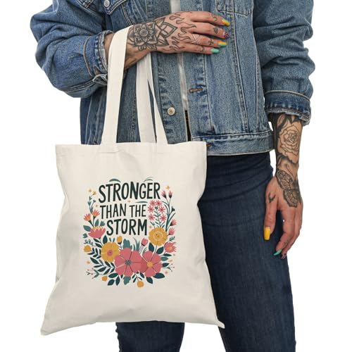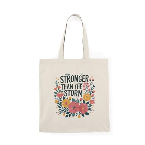 Generic - Tote Bag - Canvas Zipper Bag - Stronger Than The Storm with Colorful Flowers - Design for Gifts and Occasions - Printed Shopping Bag - Lightweight, Durable and Eco-Friendly for College Gift