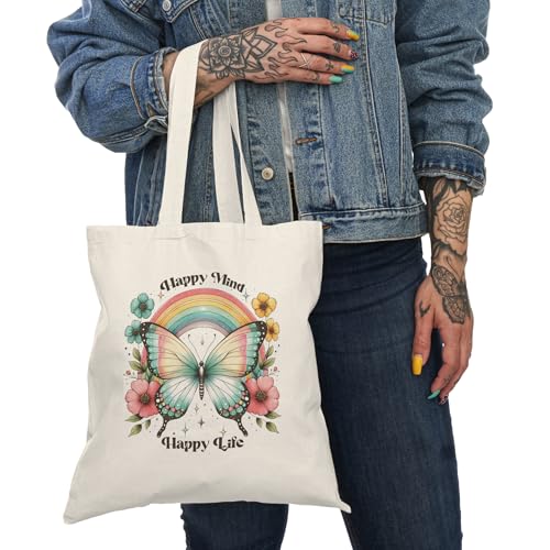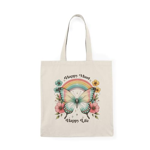 Generic - حقيبة يد قماشية بسحاب - حقيبة قماشية بسحاب هابي مايند لايف ايجابية
