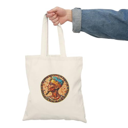 Generic - Tote Bag – شنطة قماش بسحاب بتصميم الفرعون المصري – شنطة توتي واسعة وخفيفة للتسوق اليومية – حقيبة عملية صديقة للبيئة وقابلة لإعادة الاستخدام – حقيبة قماش تراث مصري