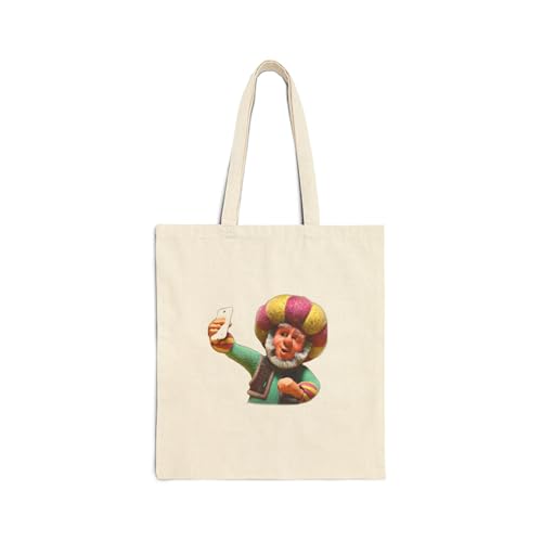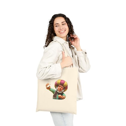 Generic - Tote Bag - حقيبة قماشية بسوسته بتصميم لشخصية فنانيس وهو يلتقط "سيلفي" بأسلوب عصري مبهج - شنطة كتف قطنية متينة لهدايا رمضان، أبيض كريمي.