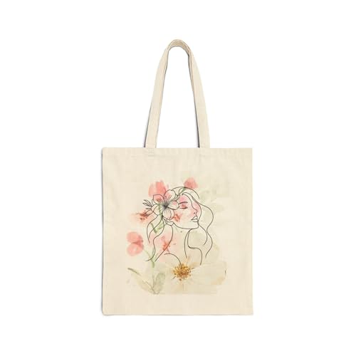 Generic - Tote Bag - حقيبة قماشية بسوسته بتصميم فني عصري - حقيبة كتف قماشية برسومات زهور، Minimalist Face Art Design, مثالية للتسوق والهدايا النسائية