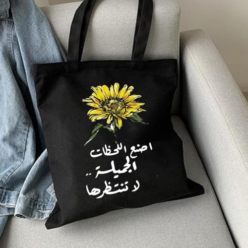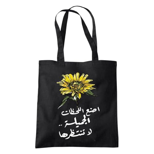 Generic - شنطة يد كبيرة توت للنساء، 40 × 40 سم، اسود بسحاب، جزء داخلي مبطن، طباعة على جانب واحد، تصميم زهرة الشمس، اصنع لحظات جميلة، نحن نطبع هديتك