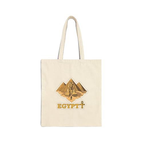 Generic - Tote Bag - Golden "EGYPT" Logo Zipped Canvas Bag with Pyramids, Sphinx and Key to Life - Cotton Shoulder Bag for Royal Souvenirs, Cream White, Durable and Fashionable.