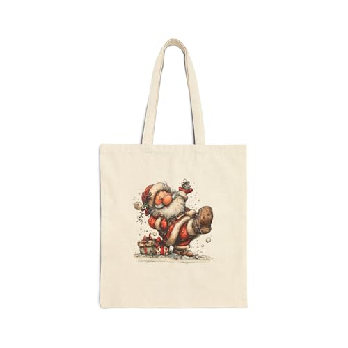 Generic - Tote Bag - حقيبة قماشية بسوسته بتصميم سانتا كلوز السعيد مع هدايا الكريسماس - شنطة كتف قطنية مبهجة للتسوق، أبيض كريمي متين وعملي.