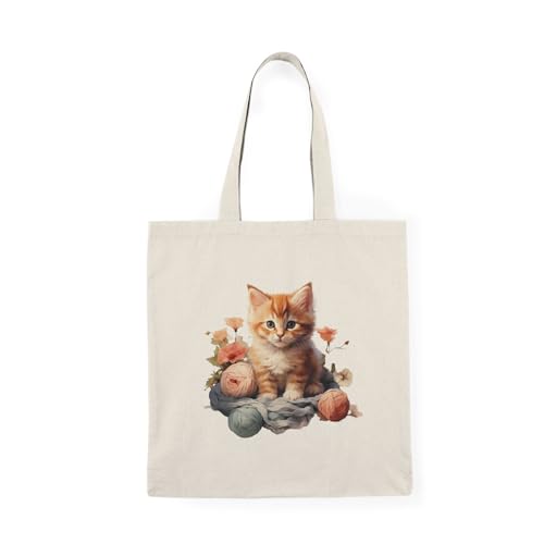 Generic - Tote Bag - Kitten And Knitting Watercolor Clipart Tote Bag-33