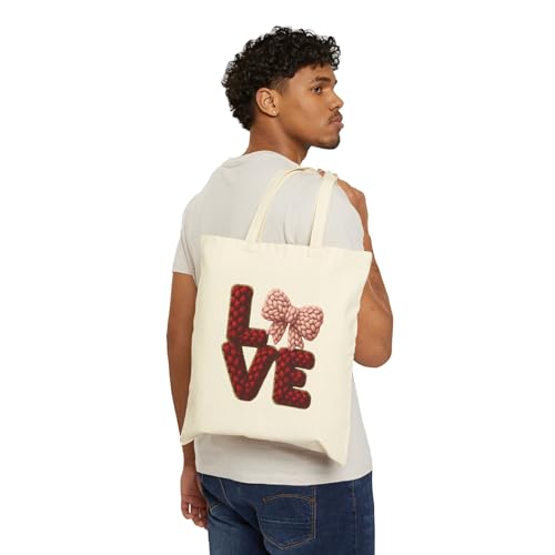 Generic - Tote Bag - حقيبة قماشية بسوسته بتصميم كلمة LOVE كروشيه مع فيونكة وردية - شنطة كانفاس رومانسية هدايا عيد الحب