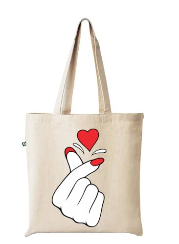 Generic - شنطة يد كبيرة توت بتصميم ايماءات على شكل قلب بلون بيج طبيعي