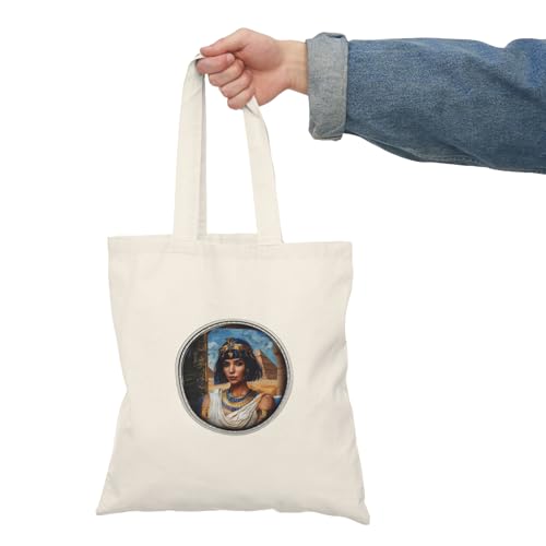 Generic - Tote Bag – شنطة قماش بسحاب بتصميم ملكة فرعونية – شنطة واسعة وخفيفة للتسوق اليومية – حقيبة عملية صديقة للبيئة وقابلة لإعادة الاستخدام – حقيبة قماش تراث مصري