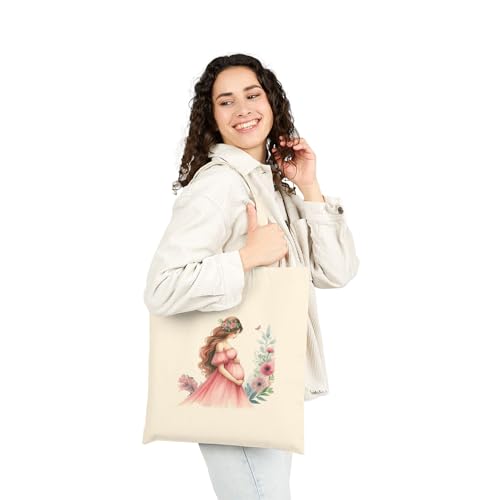 Generic - Tote Bag - حقيبة قماشية للأم الحامل - Pregnant Woman & Floral Design Tote Bag, هدية مثالية للأم الجديدة، حقيبة كتف قطنية أنيقة وعملية