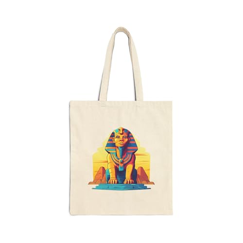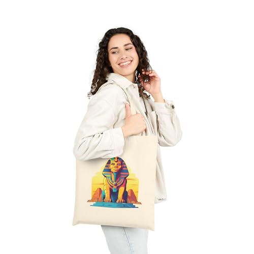 Generic - Tote Bag - حقيبة قماشية بسوسته بتصميم تمثال "أبو الهول" (Sphinx) بألوان زاهية وتفاصيل فنية حديثة - شنطة كتف قطنية لهدايا تذكارية مصرية مميزة، أبيض كريمي متين وعصري.