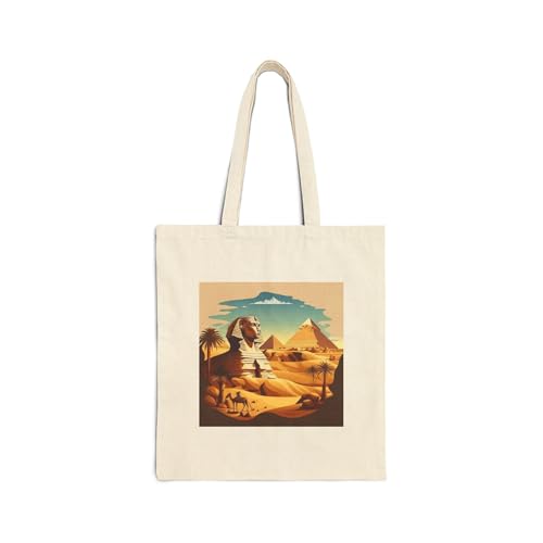 Generic - Tote Bag - حقيبة قماشية بسوسته بتصميم مشهد "أبو الهول والأهرامات" وقت الغروب - شنطة كتف قطنية لهدايا زوار مصر ومحبي الآثار، أبيض كريمي متين وعصري.