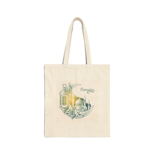 Generic - Tote Bag - Vintage Crescent Art Mosque and Lanterns Turquoise Canvas Zipper Bag - High-end Cotton Shoulder Bag for Ramadan Gifts, Durable Cream White