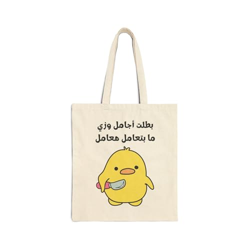 Generic - TOTTY BAG - Beige Canvas Zipper Bag Angry Chick Hero Pretty and Costume Treat Funny Canvas Bag for Lessons School Funny Angry Duck with Kinfe Tote Bag With Zipper