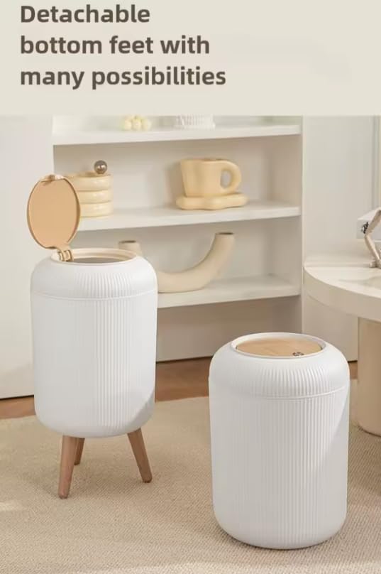 Generic - سلة مهملات (باسكت) تاتش مضلعة أنيقة بتصميم اسكندنافي ناعم، تجمع بين العملية والشكل الجمالي.مزودة بغطاء تاتش، وأرجل بلاستيكية متينة بالون الخشبي الانيق بدون قلق من التلف أوالرطوبة.