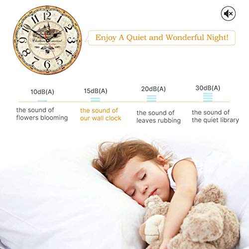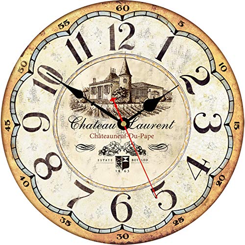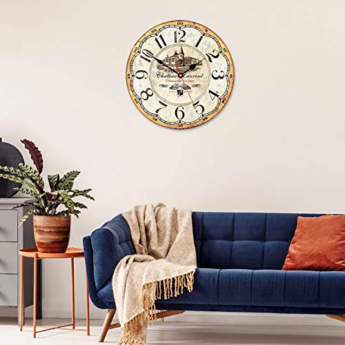 Toudorp - ساعة حائط خشبية بأرقام عربية سهلة القراءة بتصميم دائري لديكور المنزل من تودورب ساعات كوارتز صامتة تعمل بالبطارية مقاس 35.5 سم بنمط ريفي عتيق نمط مانور