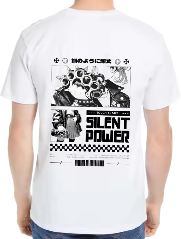 Generic - TOUGH AS STEEL. SILENT POWER T-shirt back White