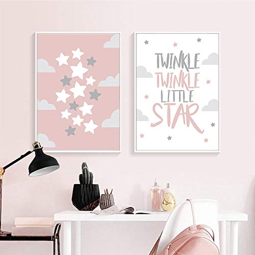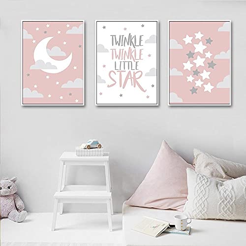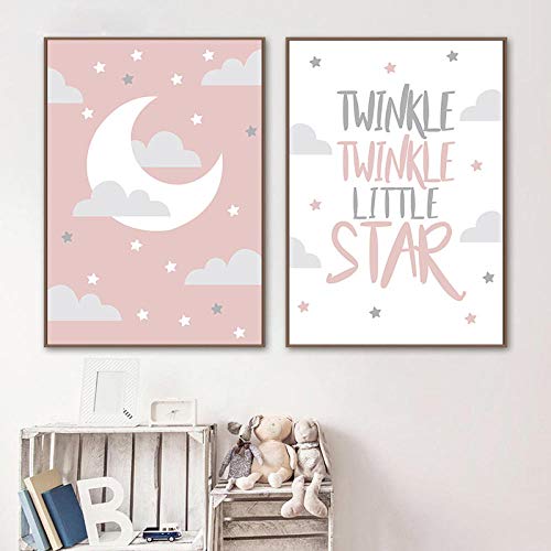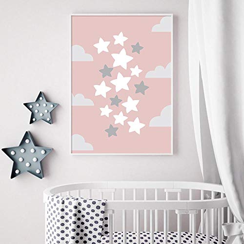 Tougmoo - TougMoo Baby Girl Nursery Wall Art Canvas Poster And Print Nordic Kids Decoration Moon Stars Picture Painting Child Bedroom Decor 40 * 60cm