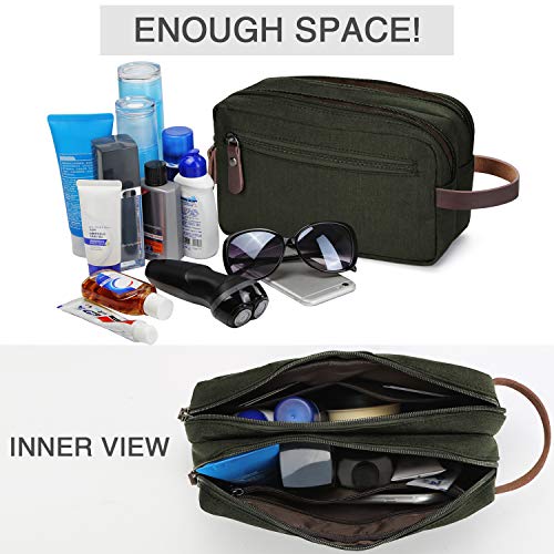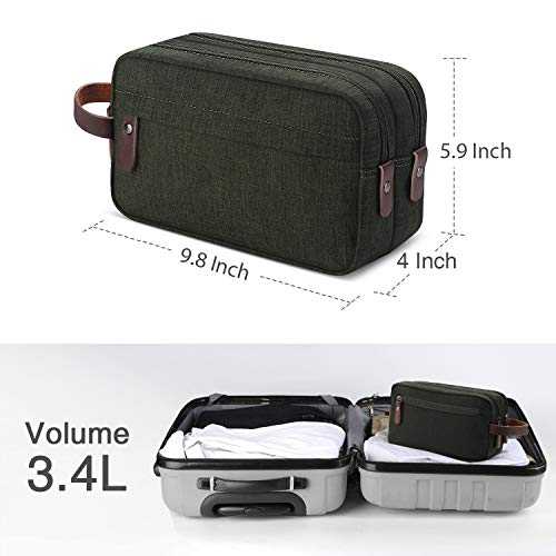 Toupons - Men's Travel Toiletry Organizer Bag Canvas Shaving Dopp Kit Bathroom Bag (Army Green Water-resistant)