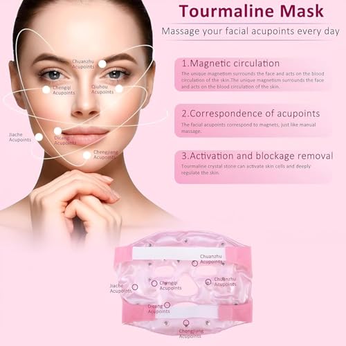 Generic - Tourmaline Magnetic Gel Massage Mask Face Mask Ice Beads Therapy Slimming Face Professional Stone Breathable Soft Washable (Pink)