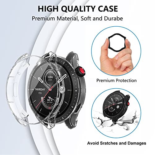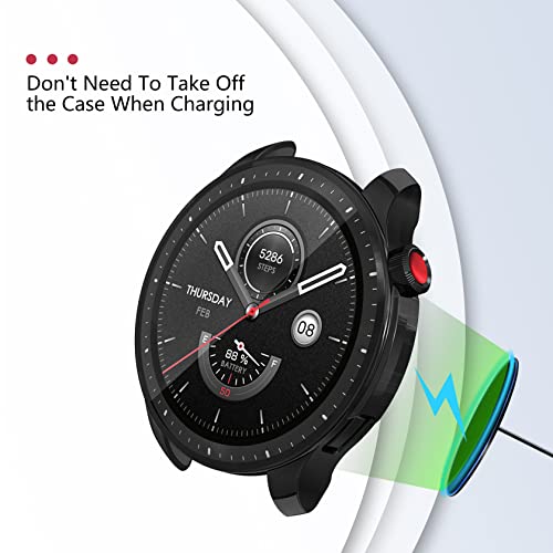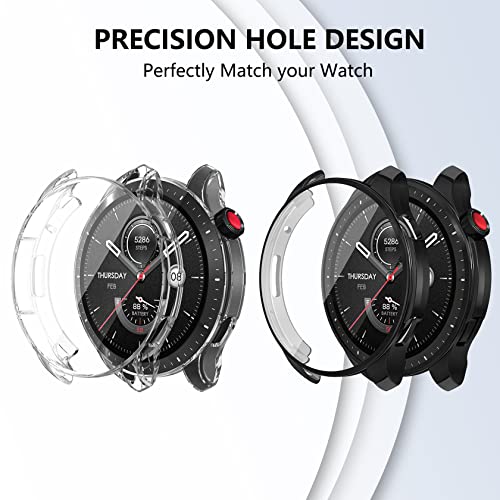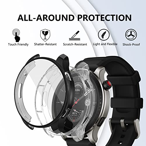 ToVioc - Pack of 2 Case with Screen Protector Compatible with Amazfit GTR 4, Anti-Scratch, Full Protection Shell, Flexible TPU Protective Case for Amazfit GTR 4 - Black & Transparent