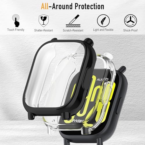 ToVioc - شاشة حماية كاملة من البولي يوريثين الحراري المرن متوافقة مع ساعة شاومي ريدمي ووتش 5 اكتيف من توفيوك، لون أسود، [عبوة من قطعتين]