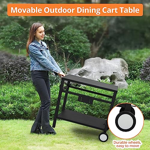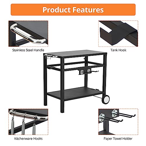 Towallmark - Towallmark Outdoor Grill Cart Pizza Oven Stand, BBQ Prep Table with Wheels & Hooks, Side Handle, Double-Shelf Grilling Cart Tabletop Griddle Cooking Station for Bar, Patio, Camping, Home (Black)