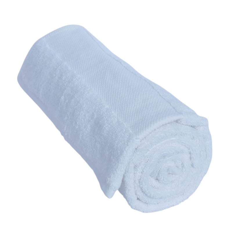 TM HOME - فوطة حمام قطنية بحواف مزخرفة من تي ام هوم، 70 سم × 1.40 م - لون أبيض