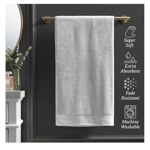 TM HOME - Towel Egyptian Cotton 100% (Luxury Hotel Towels) with Textured Border, 70x140 - Grey