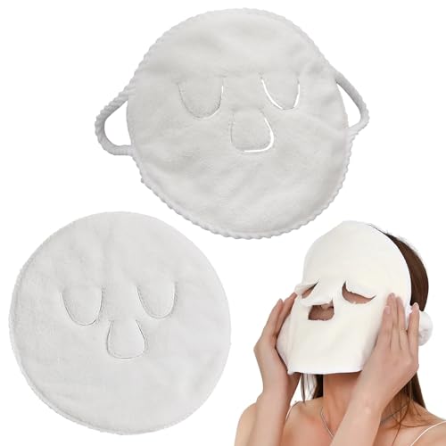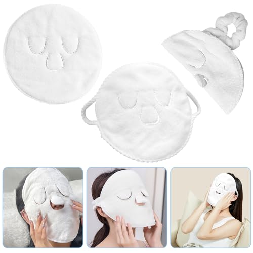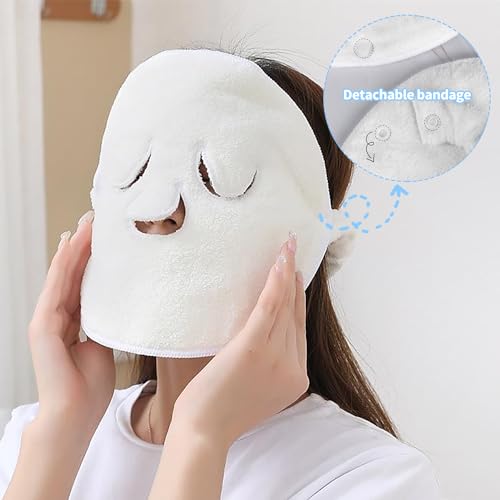 PUEERIZI - قناع فوطة بـ 3 فتحات قابل لإعادة الاستخدام، قناع للوجه بضغط بارد وساخن، جهاز بخار للوجه مرطب للعناية بالبشرة، فوط سبا للوجه بالبخار للنساء والبنات