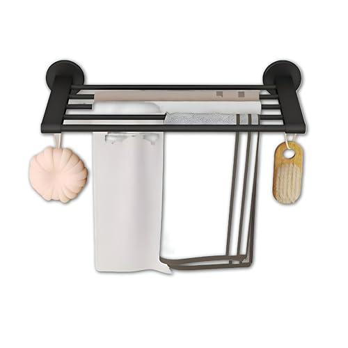 Generic - Towel Organizer - Multi-functional metal shelf with sliding shoe tray and double hanging hooks, no-drill waterproof bathroom solution