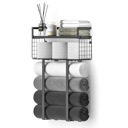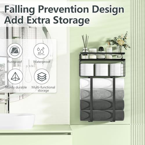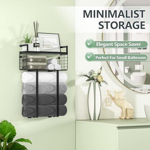 Xstydes - Towel Racks for Bathroom, Metal Towel Holder with Storage Basket,Wall Towel Rack for Rolled Towels, Towel Storage for Small Bathroom,Bathroom Shelves.