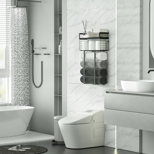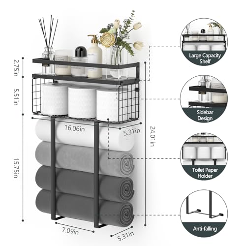 - ultifunctional Storage - The towel rack and floating shelf combine decorative and storage functions to provide ample space to store and organize towels, toilet paper and other items in your bathroom.Especially suitable for small bathrooms with limited space, apartments, campers and RVs.