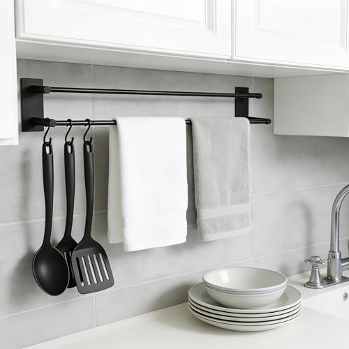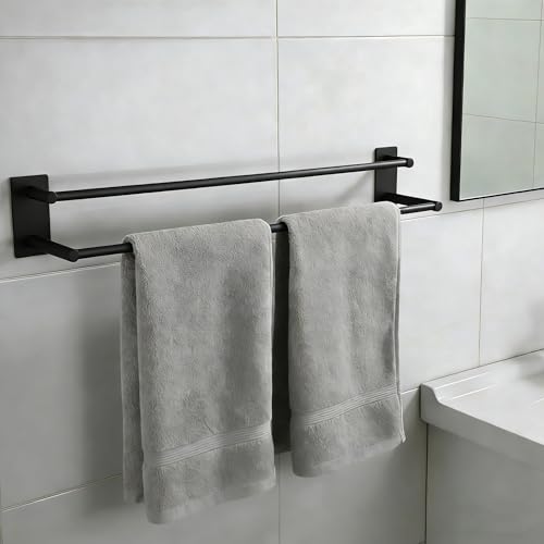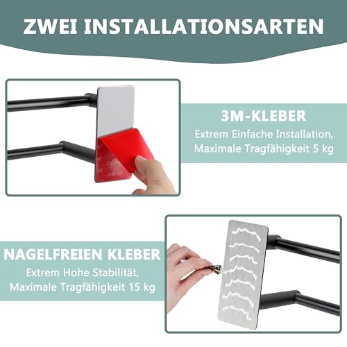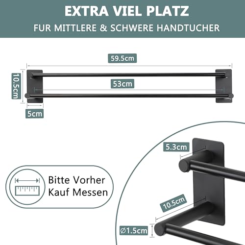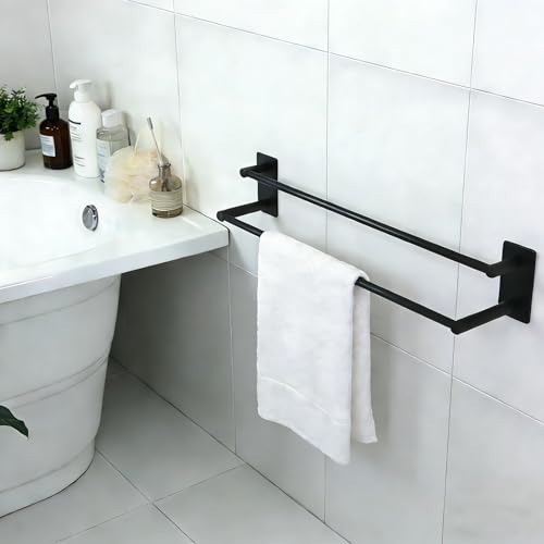 Strength Enemy - Towel Rail, No Drilling Bathroom Towel Rail, Self Adhesive Wall Mounted Double Hand Towel Holder Made of 304 Brushed Stainless Steel for Bathroom & Kitchen, Rust & Scratch-Resistant ( 55 cm, Black)