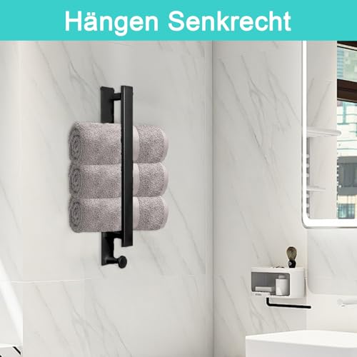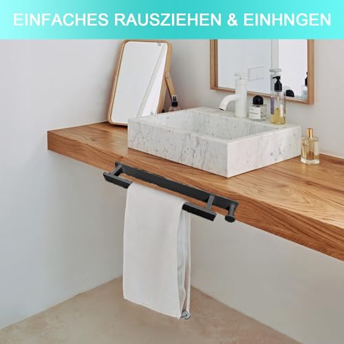 youbeautify - Towel Rail No Drilling Self-Adhesive Stainless Steel Towel Rail Bathroom Wall 40 cm Guest Towel Holder Wall Mounted with Towel Hook Bath Towel Holder Bathroom Accessories Black