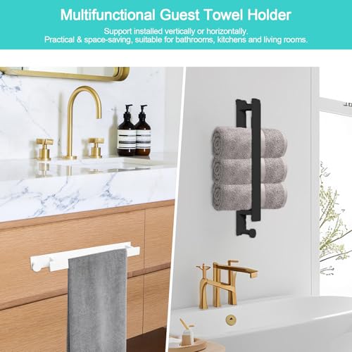 - 40cm Guest Towel Holder The black towel bar without drilling uses upgraded double-sided adhesive, which sticks stronger and makes installation safer. The self-adhesive towel rail is easy to use and can be installed vertically or horizontally. The black colour looks stylish and does not disturb the existing bathroom decoration.