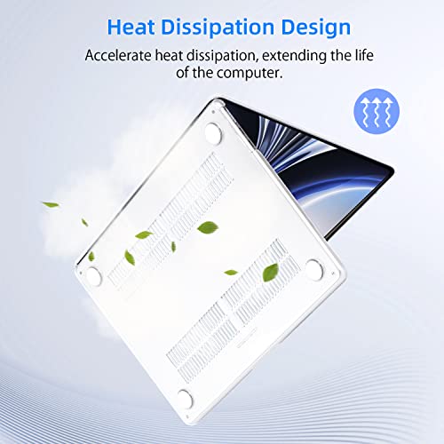 - 【Cut Out Vents & Rubberized Feets】Aside from regular port cut-outs, the bottom of the case perfectly matches the vent slots of your MacBook Air 13.6 for proper ventilation. It also has 4 rubberized feet that can add a few millimeter of surface separation to maximize air circulation.