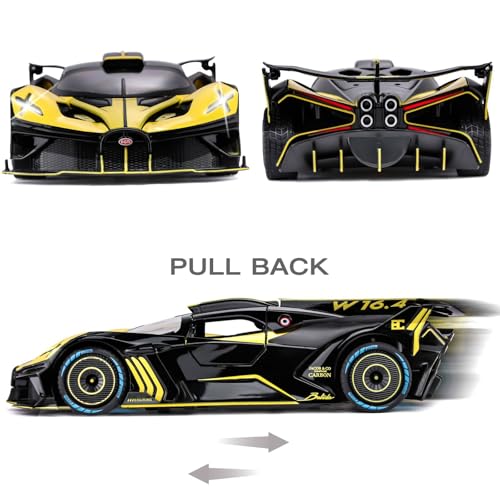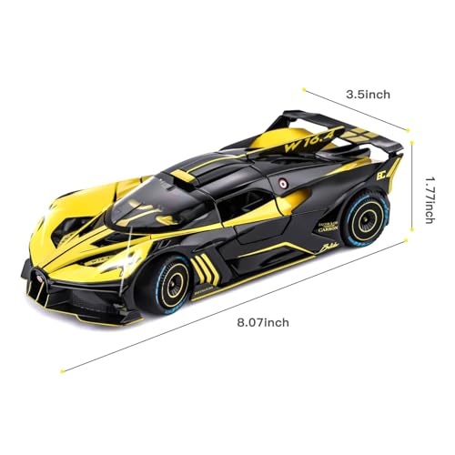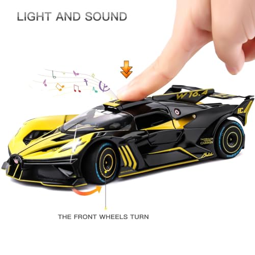 SASBSC - Toy Car Model for Bugatti Compatible with 1:24 Bugatti Bolide Alloy Diecast Car Toy with Lights and Music, Pull Back Car Toys for Kids Boys Girls Gift (Yellow)