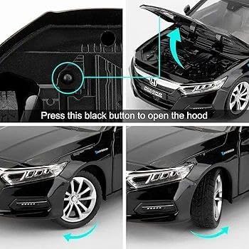 - Toy Cars Compatible for 1:24 Accord Model Cars, Pull Back Die-cast Vehicles with Sounds&Lights for Kids Boys Girls and Adults Black