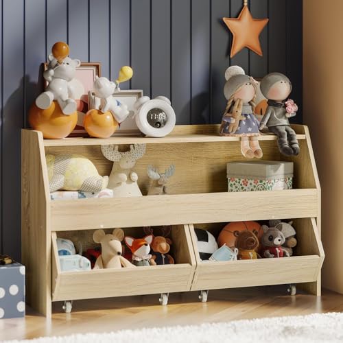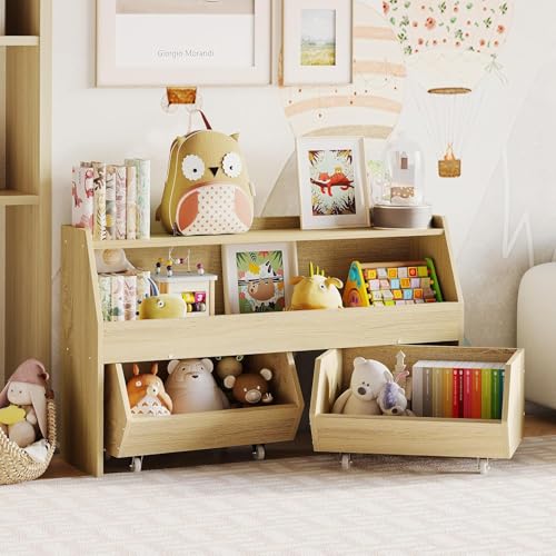 Generic - منظم تخزين ألعاب للاطفال، خزانة تخزين ألعاب مع أدراج، رف ألعاب للأطفال مع عجلات، منظم ألعاب ورف كتب للأطفال مع مساحة تخزين للحضانة وغرفة اللعب وغرفة النوم (بيرلي وود)