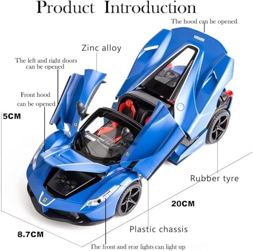 Generic - سيارة لعبة معدنية مصبوبة بمقياس 1:22، رياضية قابلة للسحب للخلف مع أبواب قابلة للفتح، محاكاة الصوت والضوء، قابلة للتجميع من خليط معدني من الزنك، للبالغين والأطفال من الجنسين من تويز لاند (أزرق)
