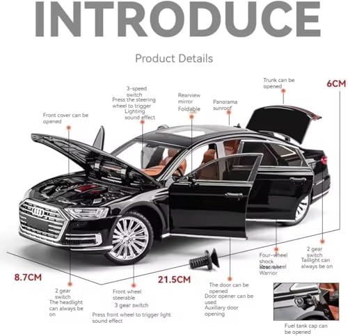 - 【تأثيرات صوتية وضوئية】- يمكن فتح أبواب وكبوت السيارة وتدوير العجلات الأربع بسلاسة. كما تصدر السيارة تأثيرات صوتية واقعية عند الضغط عليها، إضافةً إلى مصابيح ليد عالية السطوع في كل من الجزء الأمامي والخلفي من السيارة، تمامًا كالسيارة الحقيقية.