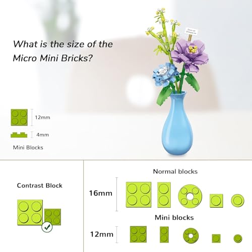 - 【Build Your bouquet】Follow our step-by-step guide to assemble this flower vase mini block set. Ideal for adults ages 14 and up, perfect for creating a colorful vase bouquet that's both fun and rewarding.
