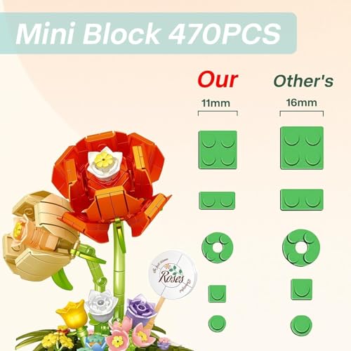 - 【Perfect Gift】The Flowers are timeless beauty, symbolizing the virtues of loyalty and simplicity, With embossed luxury gift box, Any fan of DIY or arts and crafts will love this creative set. The beautiful design, impeccable color coordination, and diverse range of possible uses make it perfect for keeping as a long-term keepsake that can be admired and enjoyed for years to come, Great gift for mothers, friends, adults, or kids, Birthday, Children's Day, Christmas, New Year and so on, flower building blocks will be a warm and impressive gift.