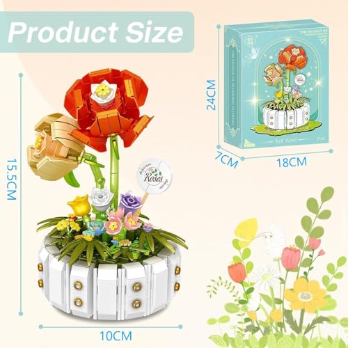 - 【DIY Craft Bouquet Blocks Set】Artificial flower building block toys provide craft enthusiasts and flower lovers with amazing display bonsai arrangement building blocks. Let the mini bricks gradually build into the shape of your favorite plant in your hands and reap a full sense of ceremony and accomplishment.