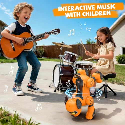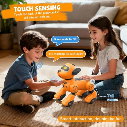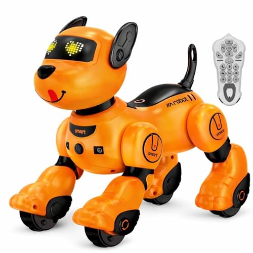 TOYS LAND - TOYS LAND RC Robot Dog Toy for Kids, Programmable Remote Control Robot Dog with Follow Up and Touch Sensors, Dancing & Singing Smart Interactive Stunt Robot, Rechargeable Puppy for Boys Girls (Orange)