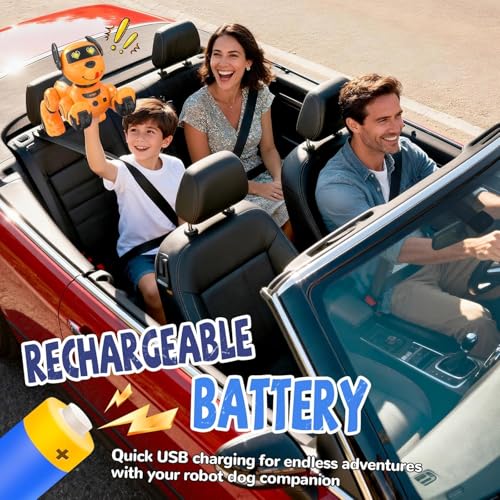 - Ideal Gift with Rechargeable Convenience: Whether it’s for a birthday, Christmas, or special reward, this programmable robot dog makes an unforgettable gift for boys and girls aged 3 and up. It comes with a built-in rechargeable battery and USB charging cable, saving money on disposable batteries and offering hours of exciting play with every charge. Please note: the robot dog communicates only in English.