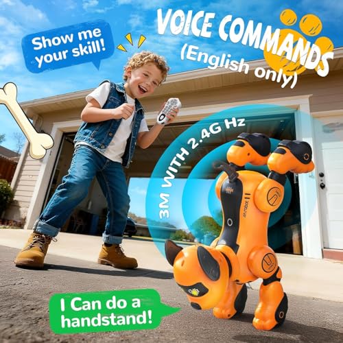 - 3-in-1 Control – Remote, Voice, and Touch Interaction: This robot dog toy offers multiple control options to keep kids fully engaged! Use the remote control for direct commands, activate voice control (English only) for fun, hands-free play, or gently touch it to trigger cute reactions. These interactive features mimic real pet responses, giving children a playful and lifelike companion that reacts to their every move.
