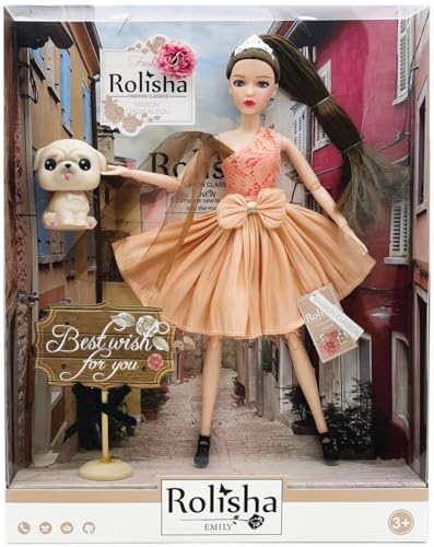 TOYS LAND - عروسة روليشا العصرية من تويز لاند، عروسة مفصلية 29 سم مع فستان رائع وشعر طويل جميل، عروسة مجموعة روليشا فاشون الكلاسيكية، أفضل هدية عيد ميلاد للبنات والأطفال والبالغين من سن 3 سنوات فما فوق (QJ099D)