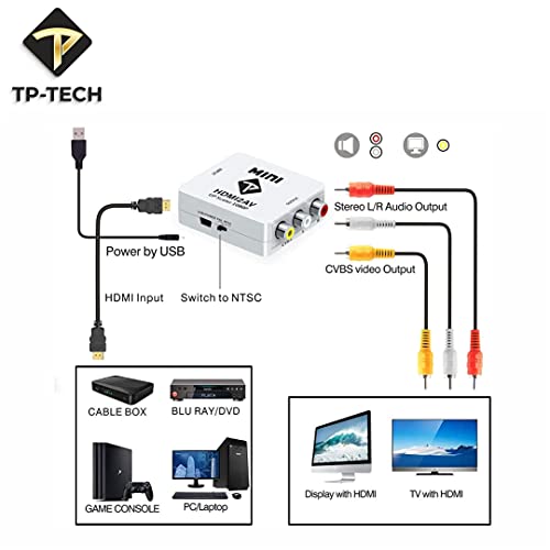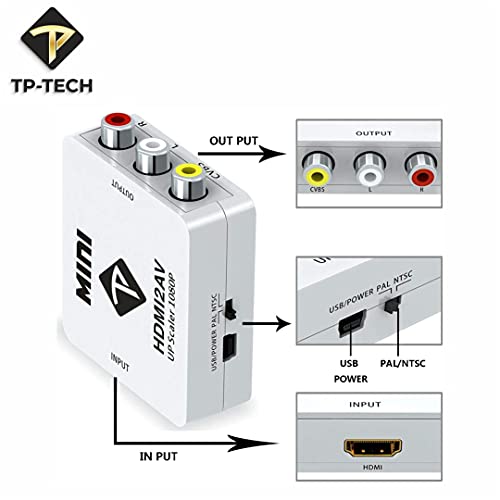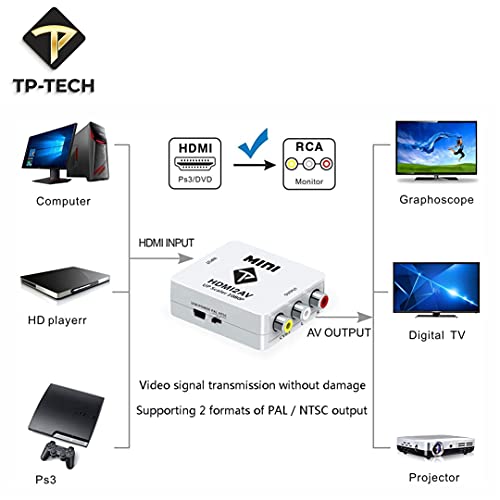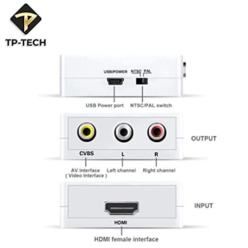 Generic - محول HDMI إلى ار سي ايه 1080p HDMI إلى av 3rca cvbs محول صوت فيديو مركب يدعم pal/ntsc للكمبيوتر واللابتوب واكس بوكس واتش دي تي في ودي في دي من تي بي-تيك