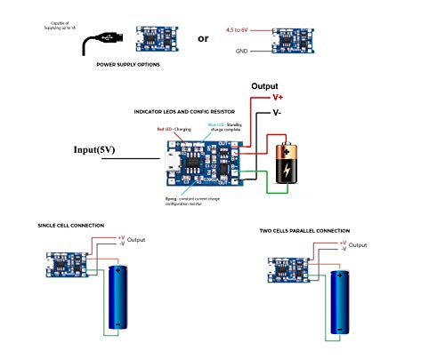 Hayatec - TP4056 5V 1A Micro USB 18650 Lithium Battery Charging Board Module TP4056 by HAYATEC (Pack of 5)